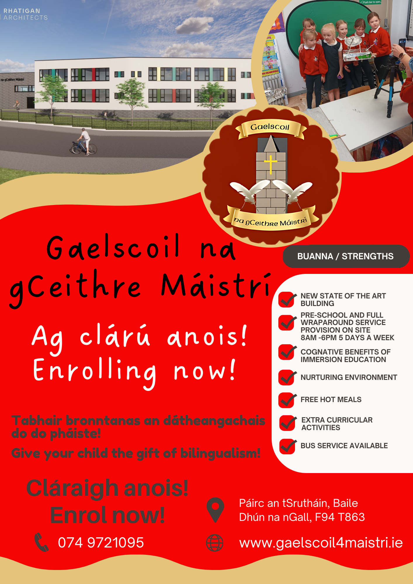 Cad chuige Gaelscoil na gCeithre Máistrí?